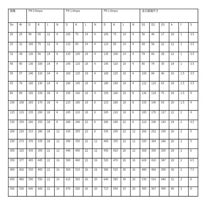 用戶根據(jù)實(shí)際需要,也可采用各種法蘭標(biāo)準(zhǔn)和活動(dòng)法蘭等方法連接,但必須保證鋼襯玻璃工藝要求的法蘭有關(guān)尺寸和厚度